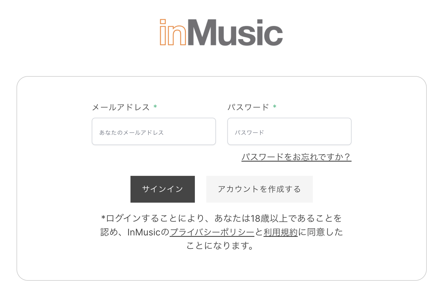 ステップ 1 inMusic アカウントを作成 / サインイン