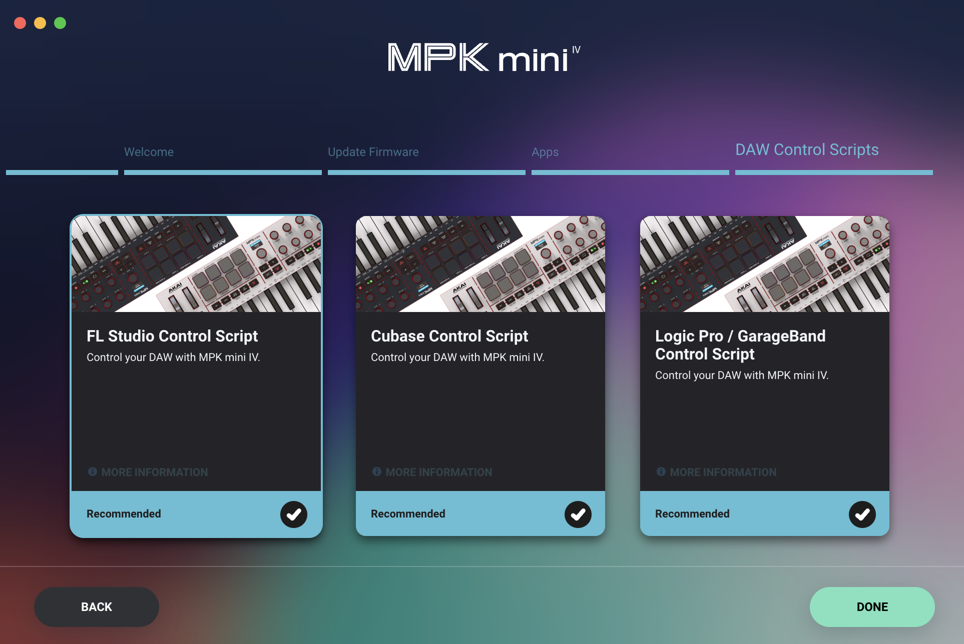 ご利用のDAW ソフト以外はチェックを外して、[DONE] をクリックします。
