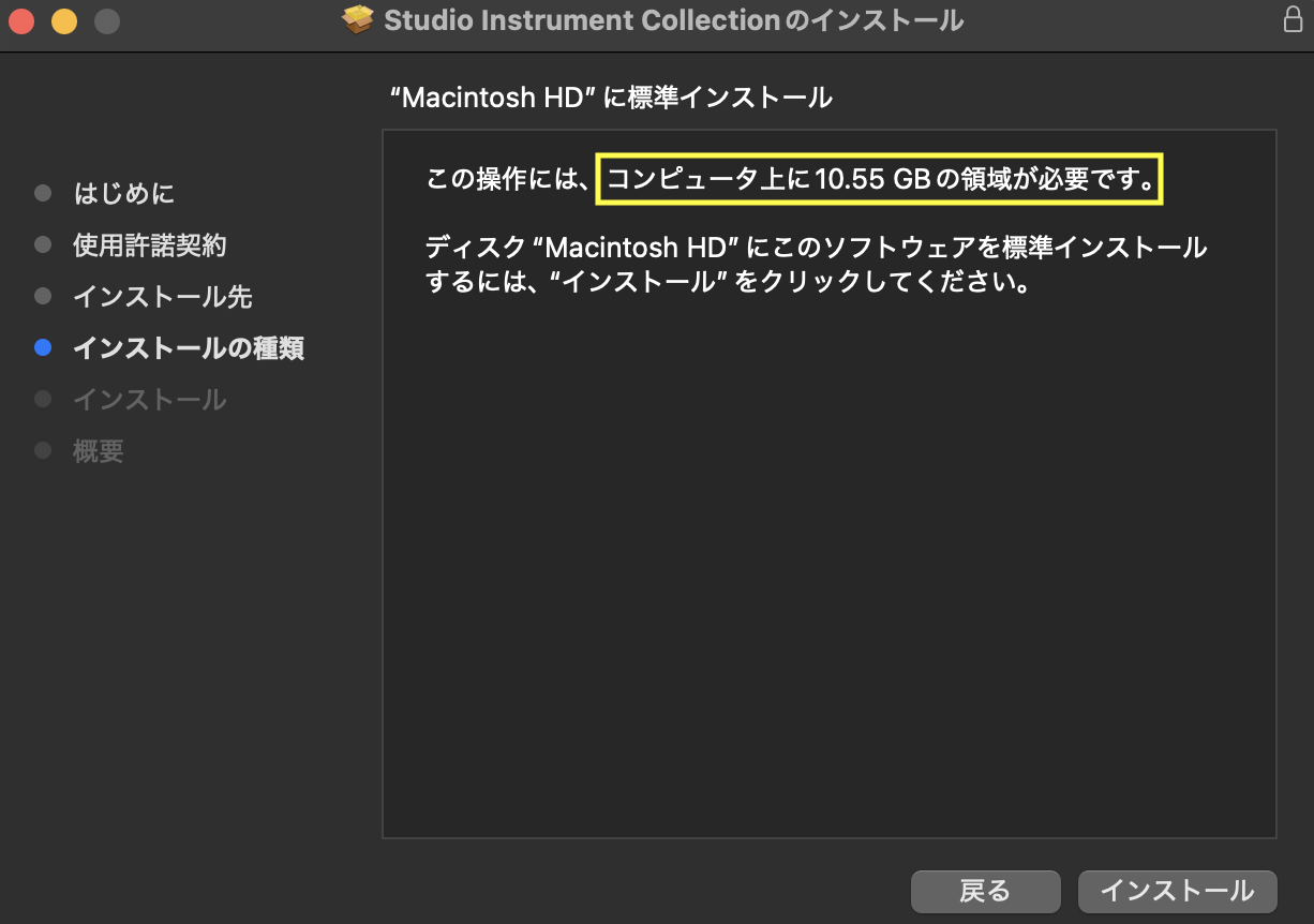 インストールには、空き容量が、10.55GB  必要なので事前に要領の確保は行なっておきましょう!