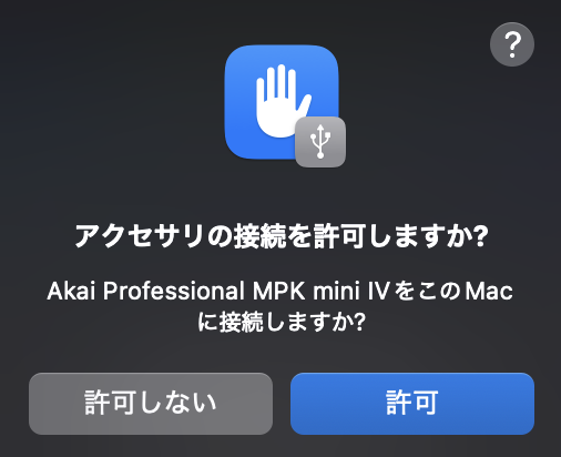 MPK mini IV を機器として接続を求められますので [許可] します。