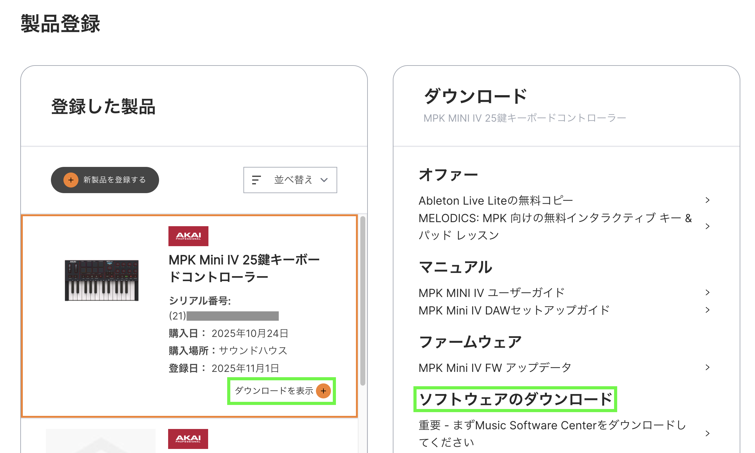 👉AKAI Professional | 製品登録するにはどうすればよいですか?