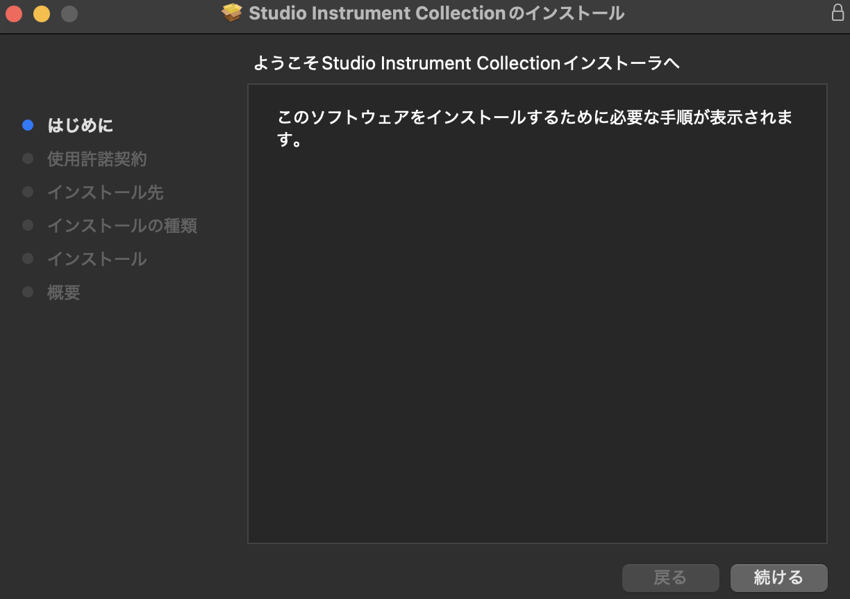 ここまで完了すると、自動的に付属音源の、Studio Instrument Collection がインストールが開始されます。