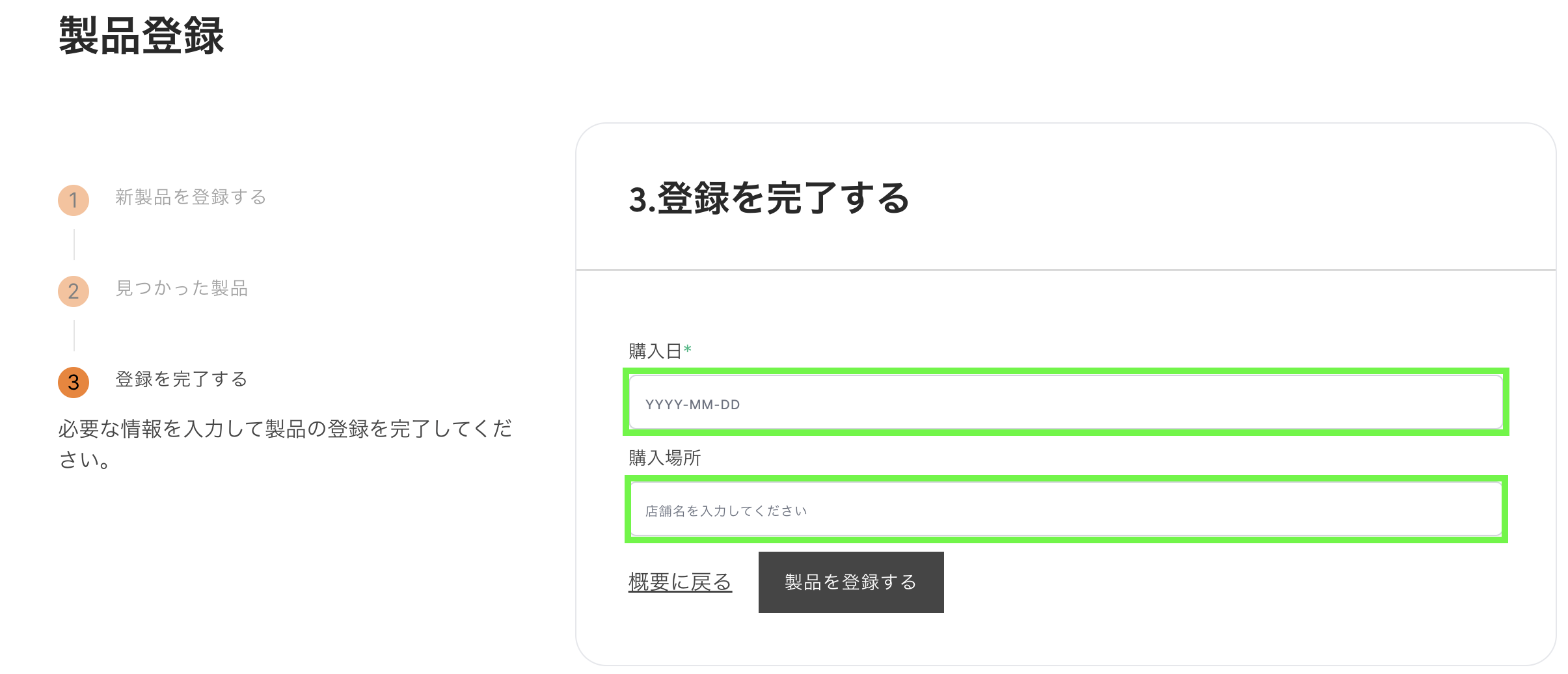 製品が表示されましたら、[製品を登録する]をクリックします。