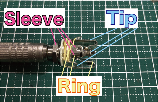 ステレオジャックは、TIPRINGSLEEVE(TRS)の3端子で構成され、
