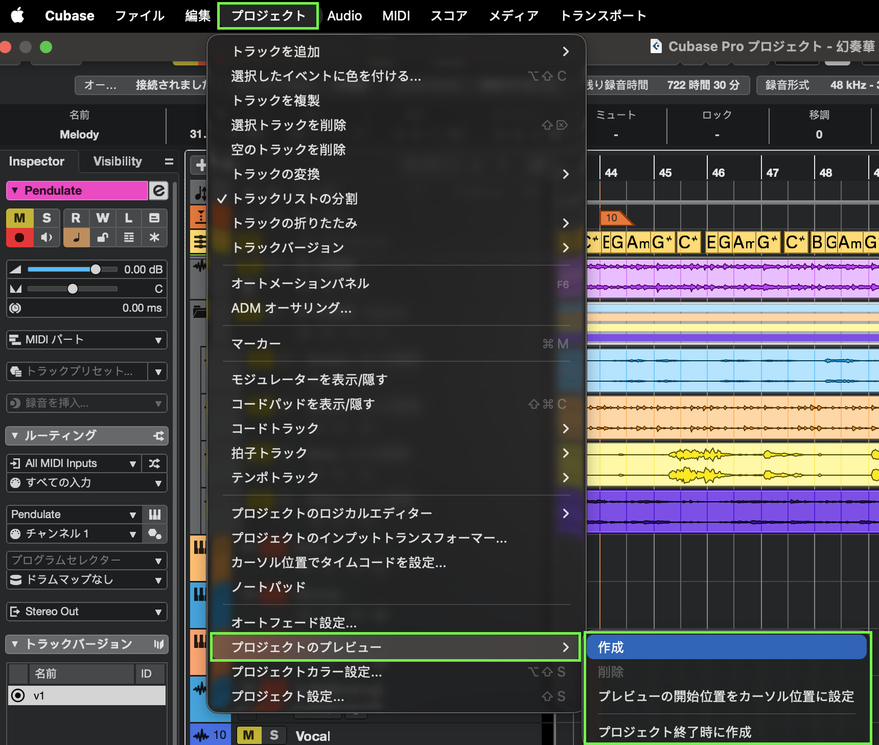 上メニュー [プロジェクト] – [プロジェクトのプレビュー] をクリックします。