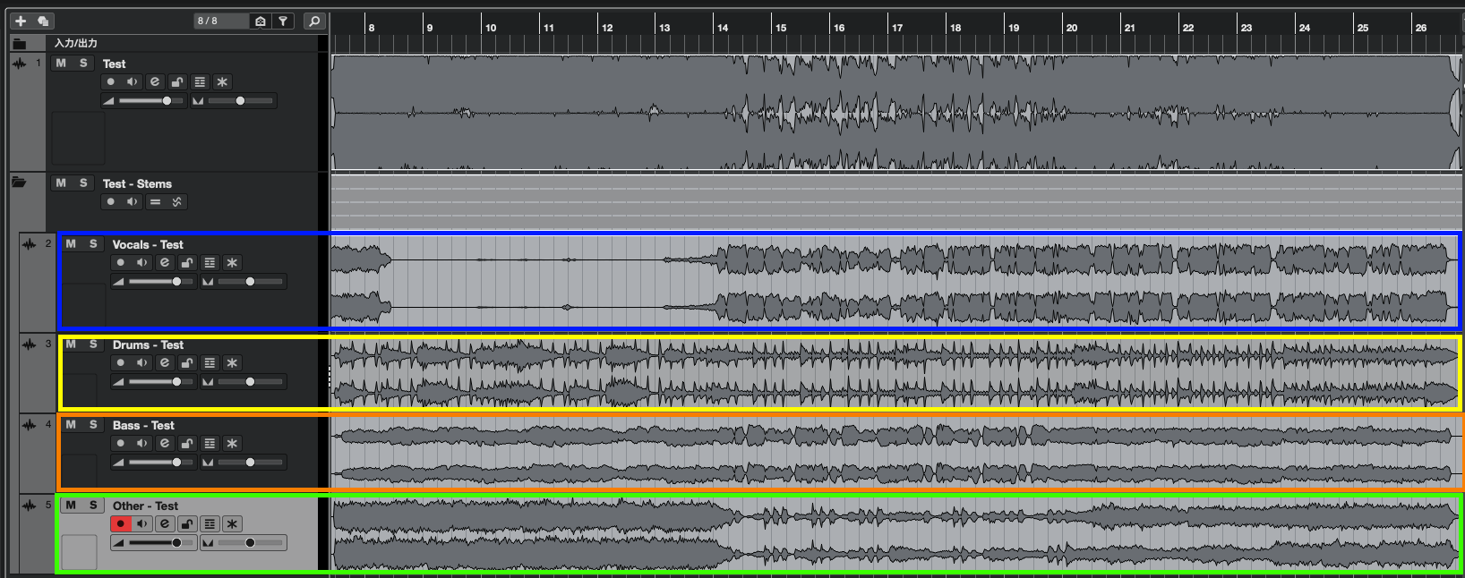 4. ステム分離されましたら、トラックができますので、用途に合わせて、ミュートやソロにし再生が可能です。