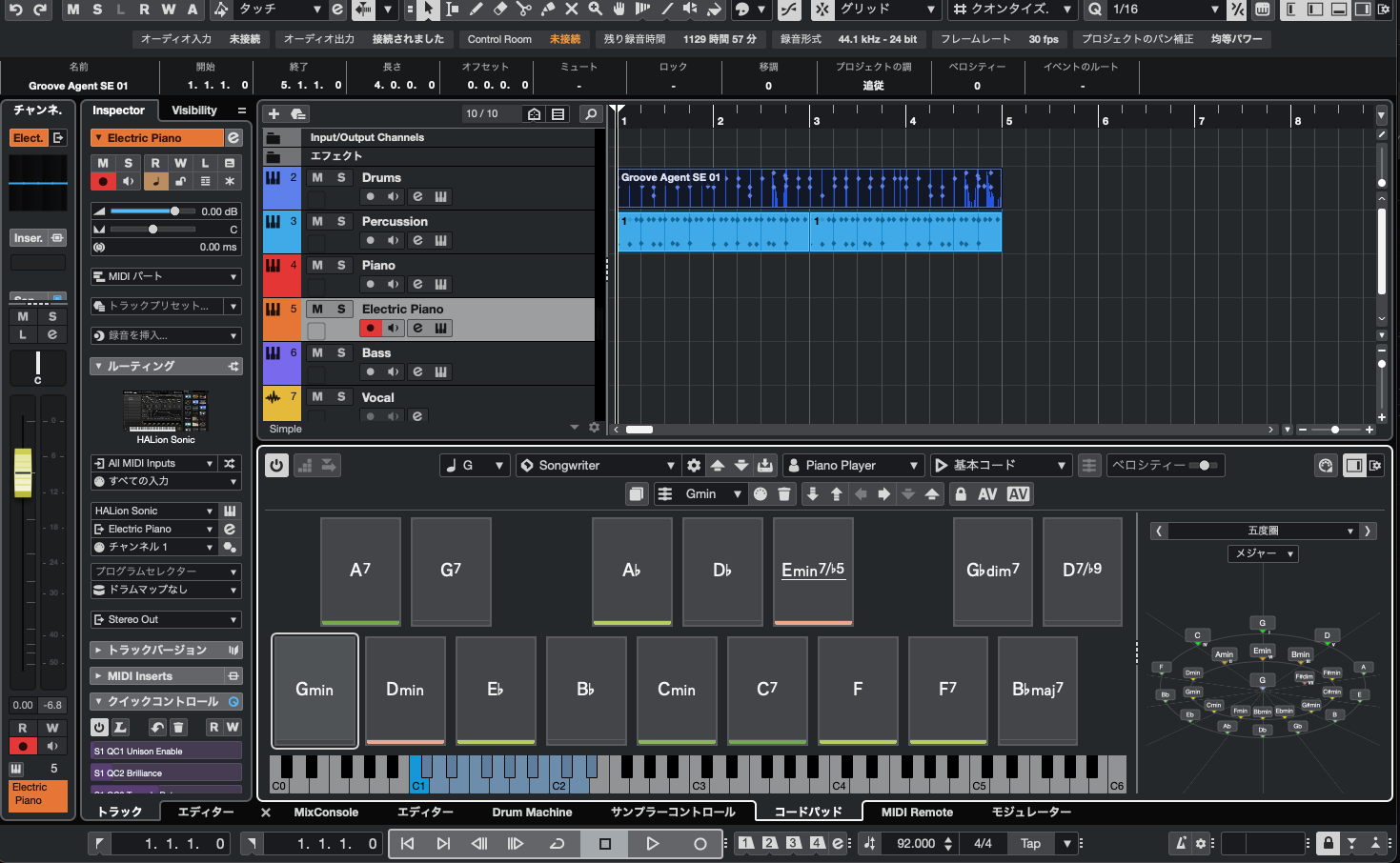 初心者でも「それっぽい」響きをすぐに体験できます。コードトラックの [モニターしているトラックを使用] の項目で、HALion Sonic のトラックなどを選択します。