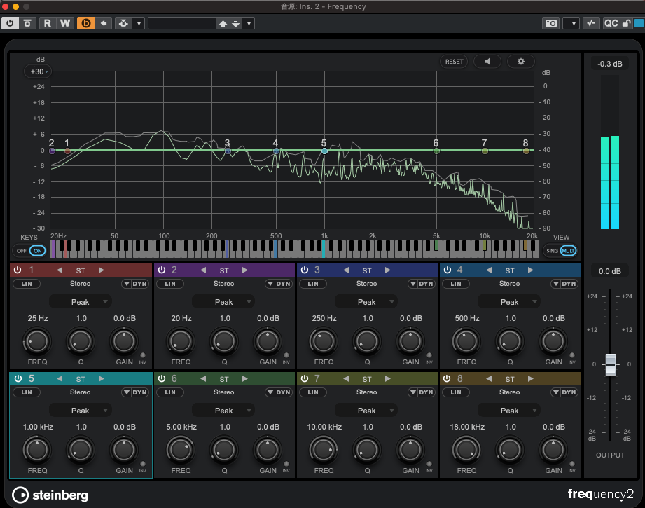 以下は、CUBASE 内臓のプラグイン “Frequency”を使用しております。