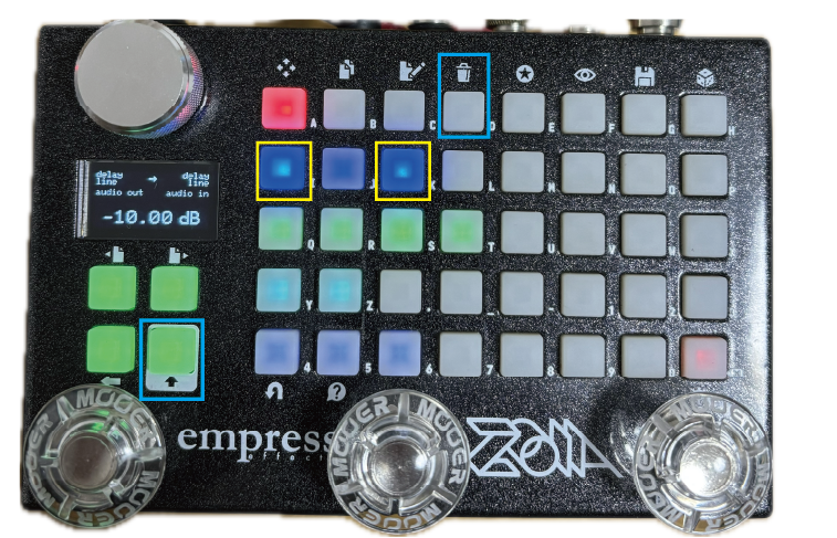操作方法は、Delay line audio out と Delay line audio in を同時に押し選択します。