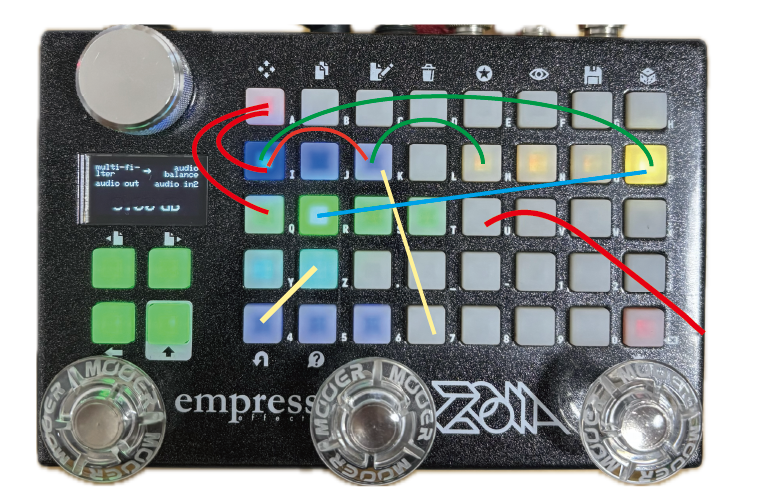 ※ こちらの数値が+の場合フィードバックの音量がどんどん上がるのでご注意ください。ここまでのモジュールの配置写真📷です。